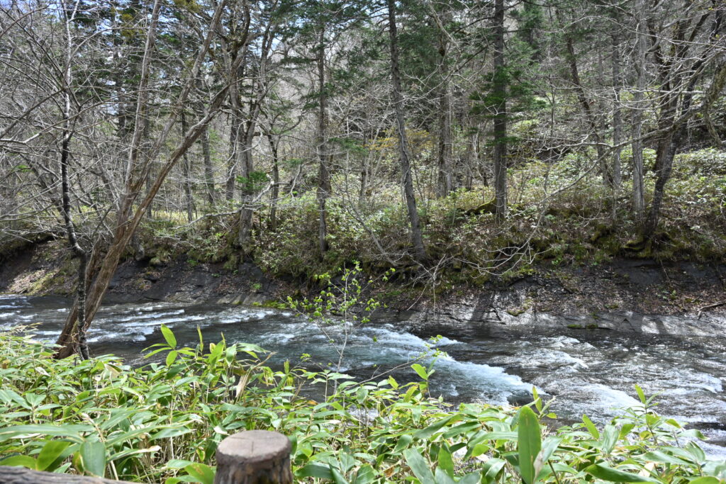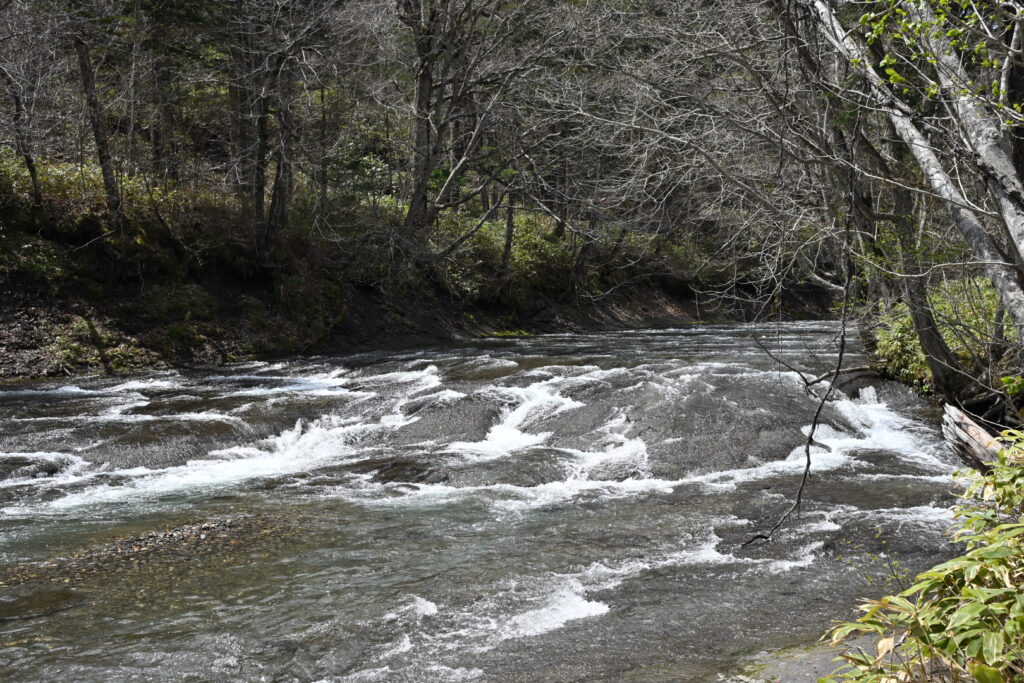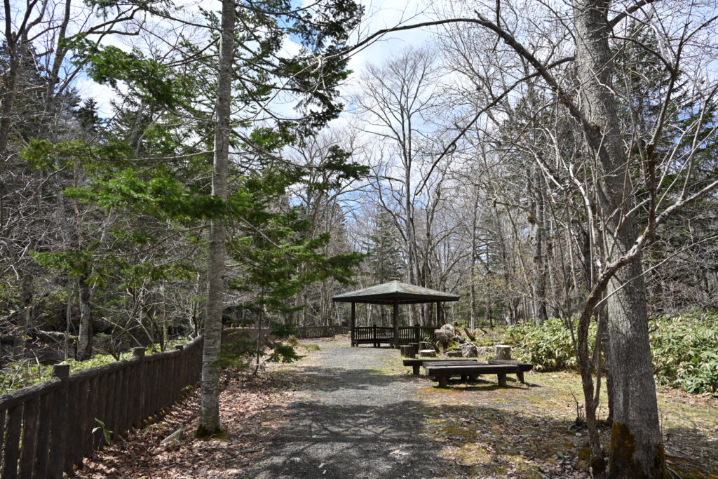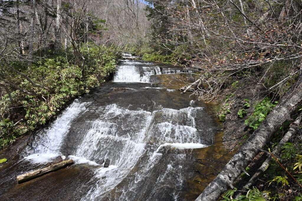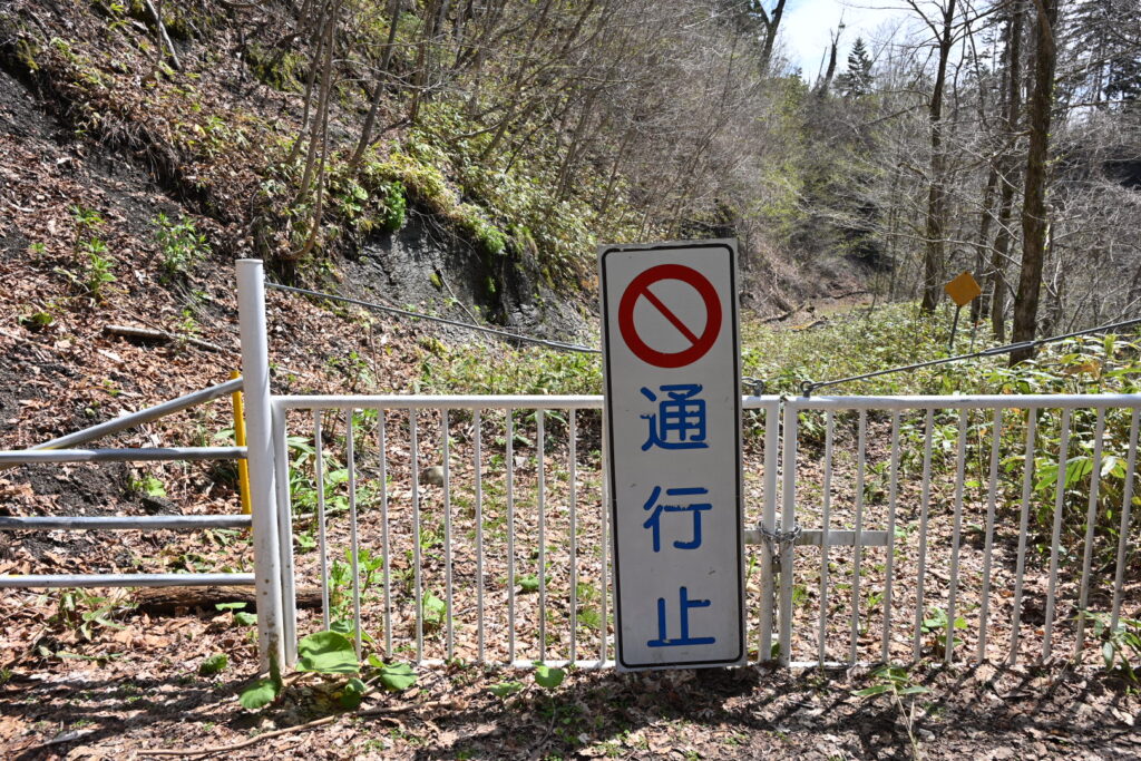 恵庭湖を散策した後、ラルマナイの滝に来てみたら、遊歩道が通行止めになっていた。