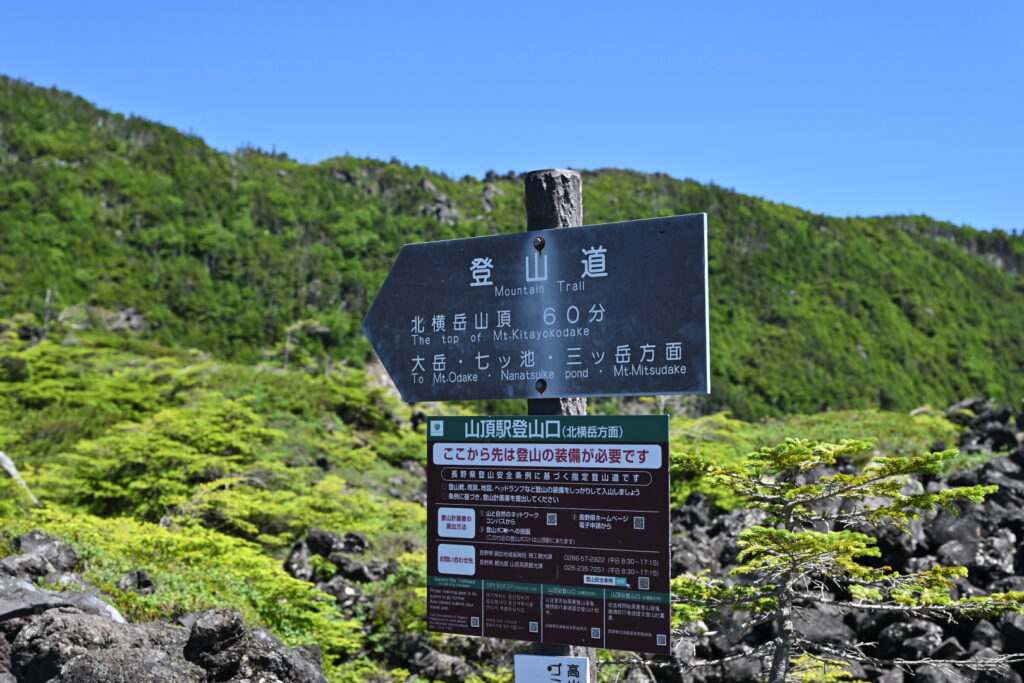 15分程度で、坪庭から北横岳登山道への分岐に到着