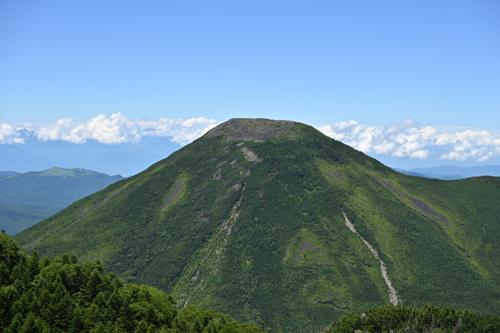 南峰からは、南八ヶ岳の峰々が素晴らしいが、北峰からは蓼科山の全貌がよく見える。