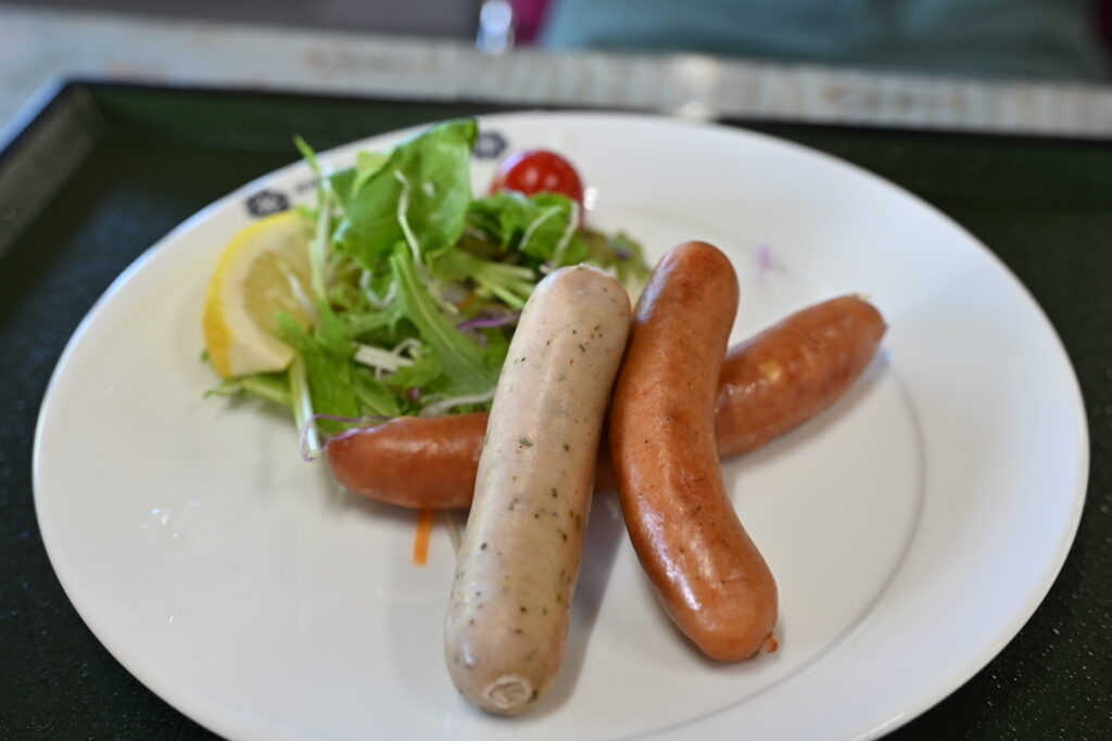下山後は、ソーセージ盛り合わせで栄養補給