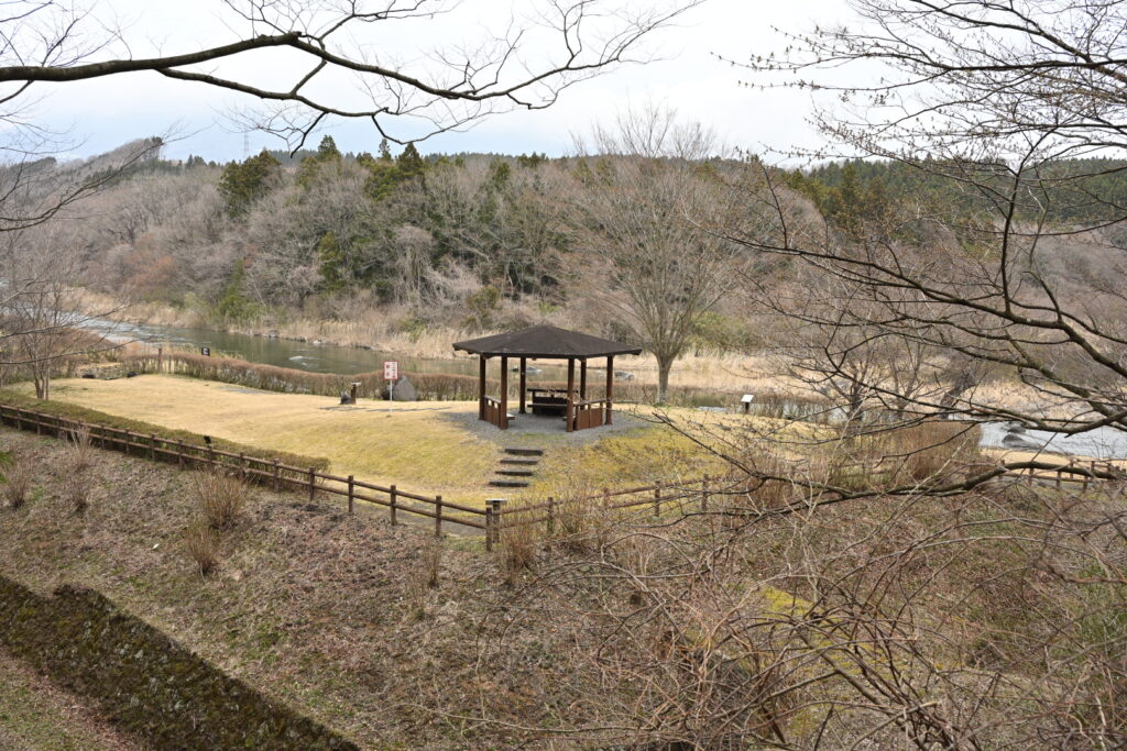 公園の駐車場もあるが、道中狭そうなので、西岩崎ポケットパークに駐車して散策。トイレもあり