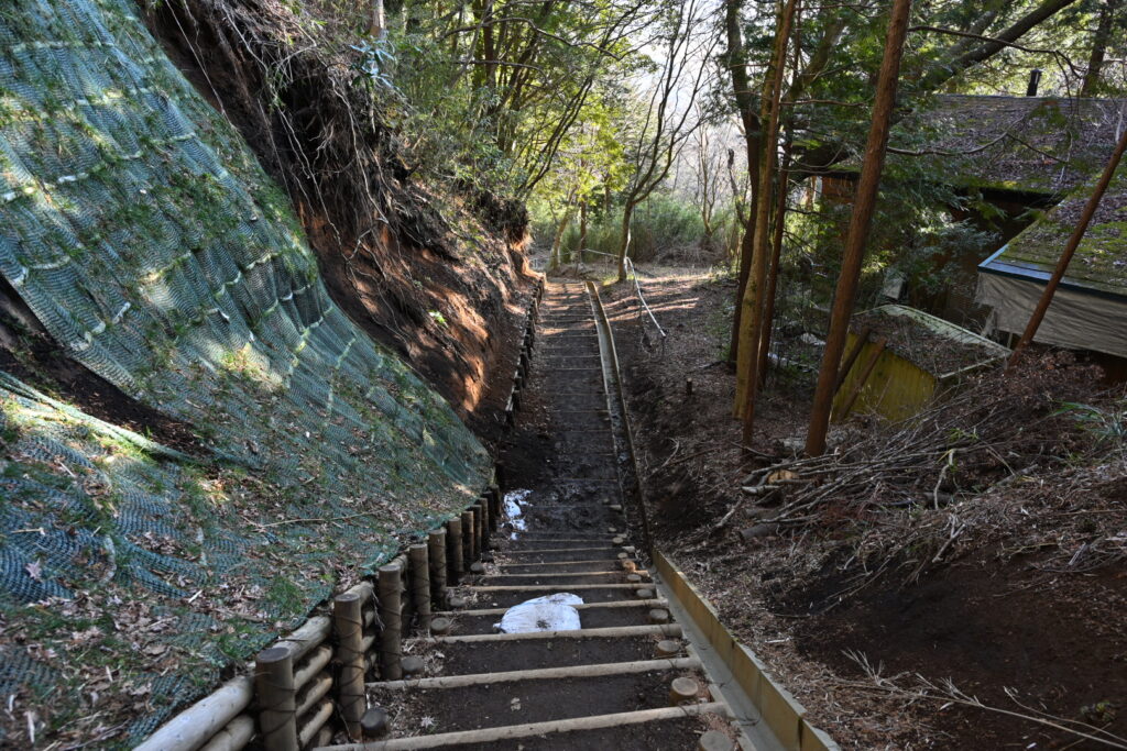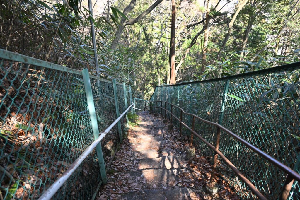 まずは急な階段を下る。