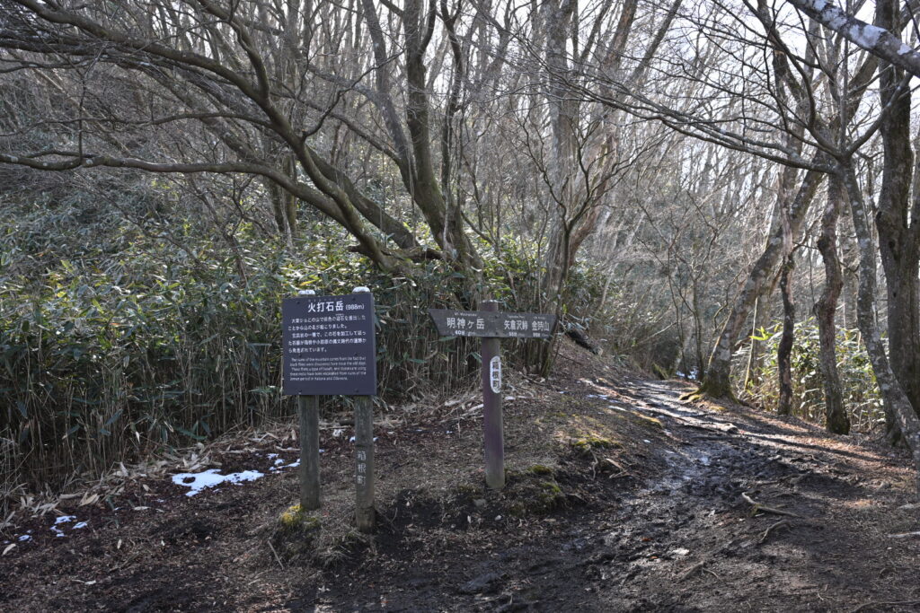 看板はあるが、火打石山の山頂は通らない。