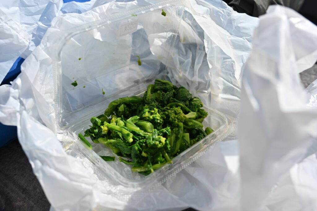 味がちょい濃いめだったので、道の駅で買った菜の花のおひたしがちょうどよかった。