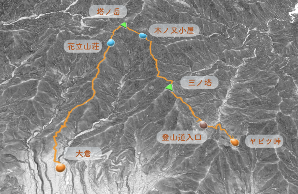 大倉方面へ。3時間ほどの道のり。