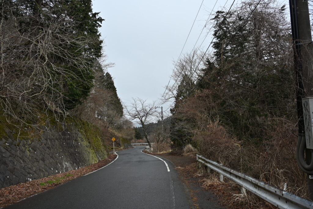 午後に天気が回復してくれることを期待し、まずは車道を下っていく。