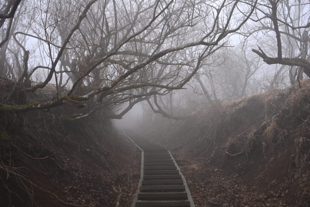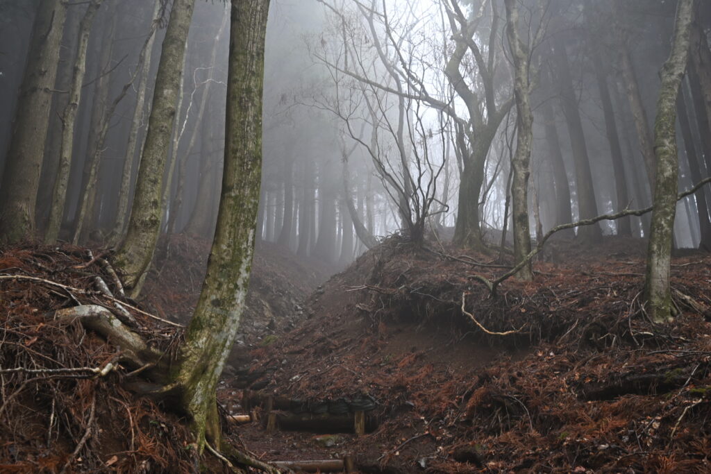 登り始めて20分ほどで、ついに雨が降ってきた。