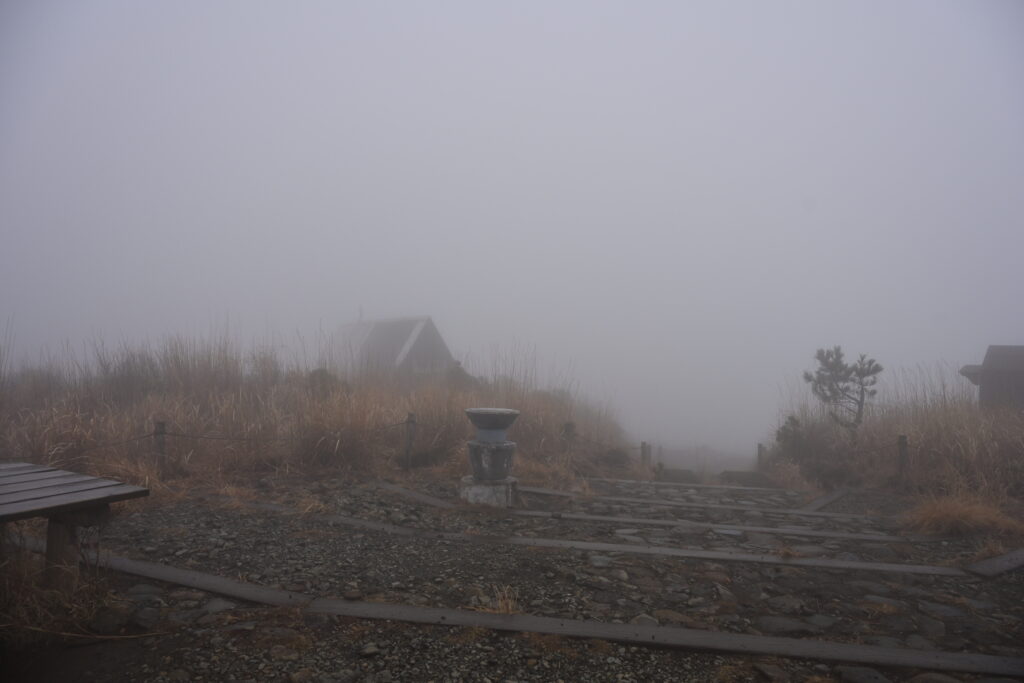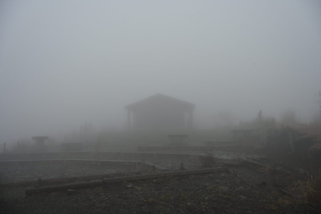 結局晴れ間はまったく見えず、山頂は雨。